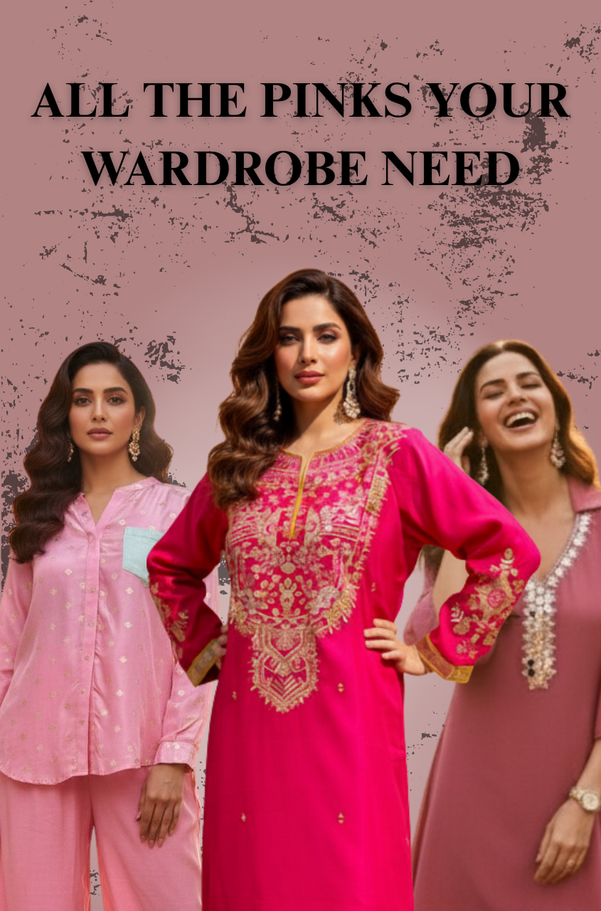 NAZM- Embroidered Hot Pink Ethnic Dress