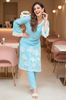- ZAHA - Pastel Blue Embroidered Two Piece Set