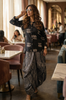 - ROZANA- Black Lotus Printed Drape Skirt With Short Shirt