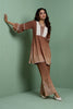 Introducing our latest creation : a chic short kurti that redefines elegance with its unique round neckline adorned with strings, giving a stylish V-neck effect when tied, the sleeves featuring delicate lace detailing and crafted from tie-dye fabric that creates a stunning ombre effect.