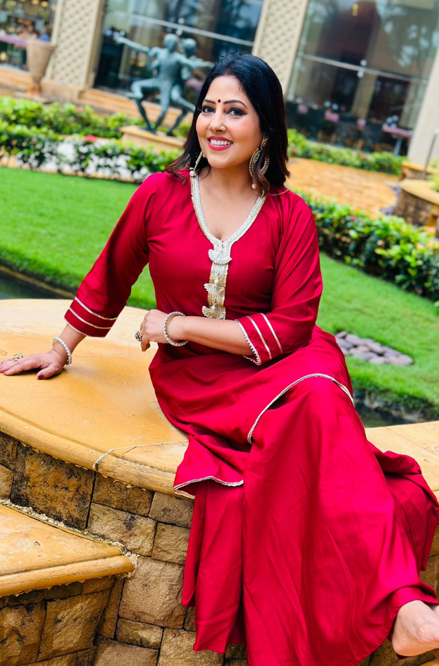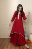 This two layered gown is surely the life of any party! A classy yet breathable gown which comes in unique shade of red , having a dramatic neckline enhanced with fine details , is surely a head turner for all your occasions✨