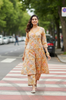 This co-ord set in a caramel color floral print is perfect for making a stylish statement. The top features a flattering V neckline and peek-a-boo lacework detailing on the sleeves for added elegance. With a flowy silhouette, convenient pockets, and a princess cut, this set ensures a graceful and comfortable fit. Ideal for both casual and semi-formal occasions, it seamlessly blends charm and functionality.